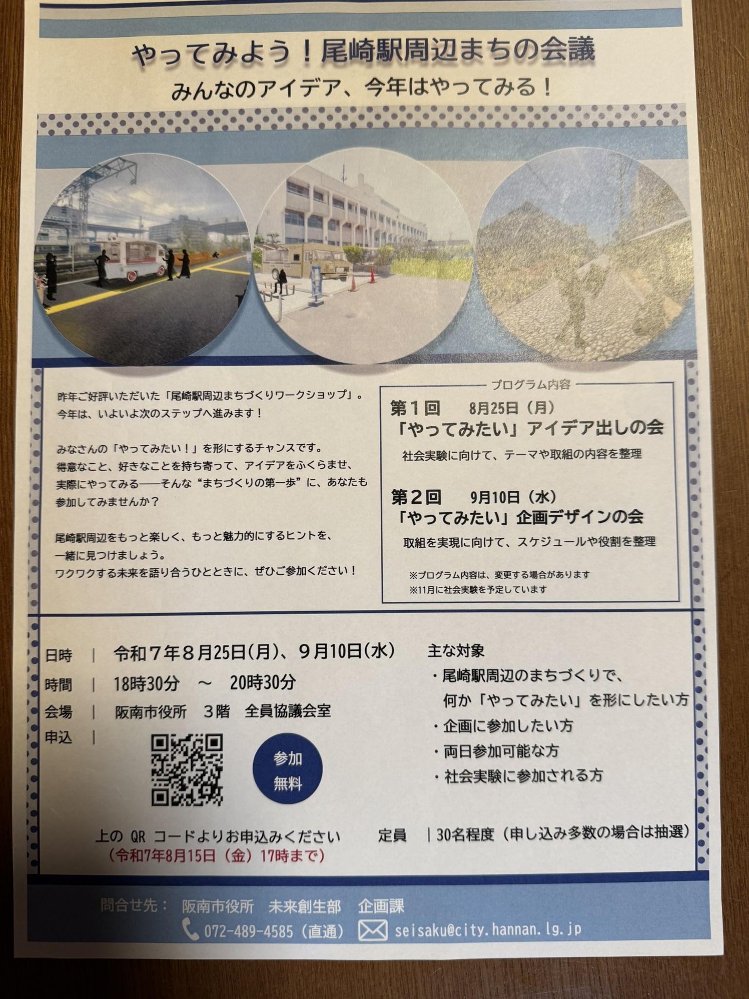 昨年8月頃より、阪南市役所未来創生部企画課主催の「やってみよう!尾崎駅周辺まちの会議」に参画しておりました。
