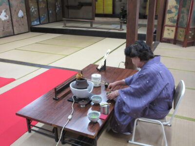 当院では映えスポットとして写真を撮ってもらい、対面所でお茶席体験をしていただきました